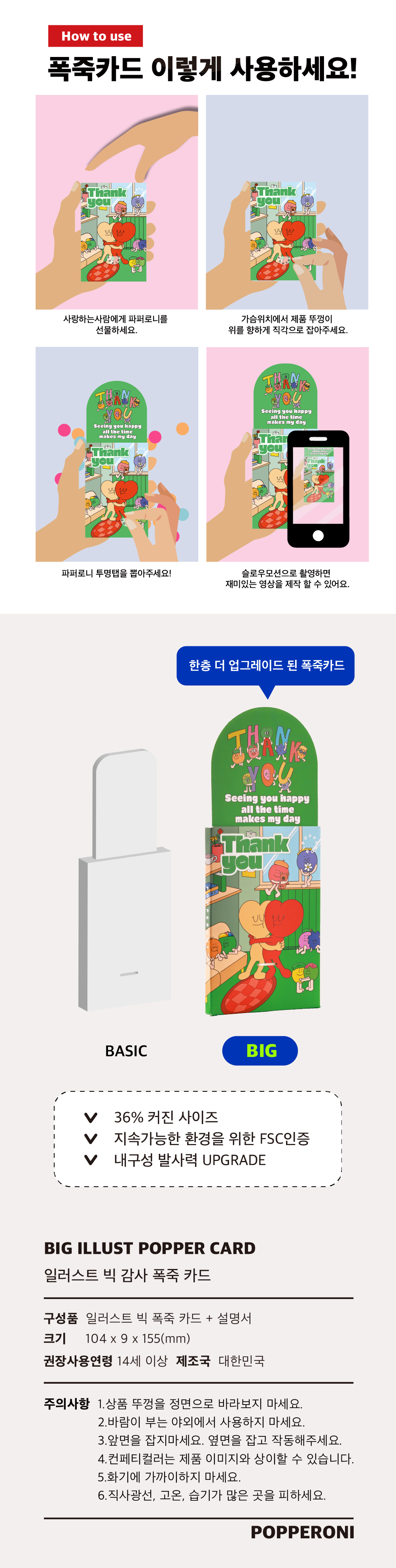 파퍼로니 일러스트 빅 감사 폭죽 카드